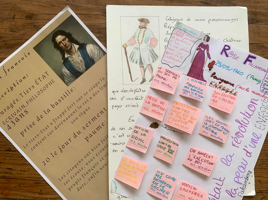 Dans le cadre de leur cours d'Histoire sur la Révolution française, les élèves des classes de 4ème ont dû créer un personnage qui aurait pu vivre la Révolution et imaginer comment ce personnage aurait pu réagir aux différents événements révolutionnaires.