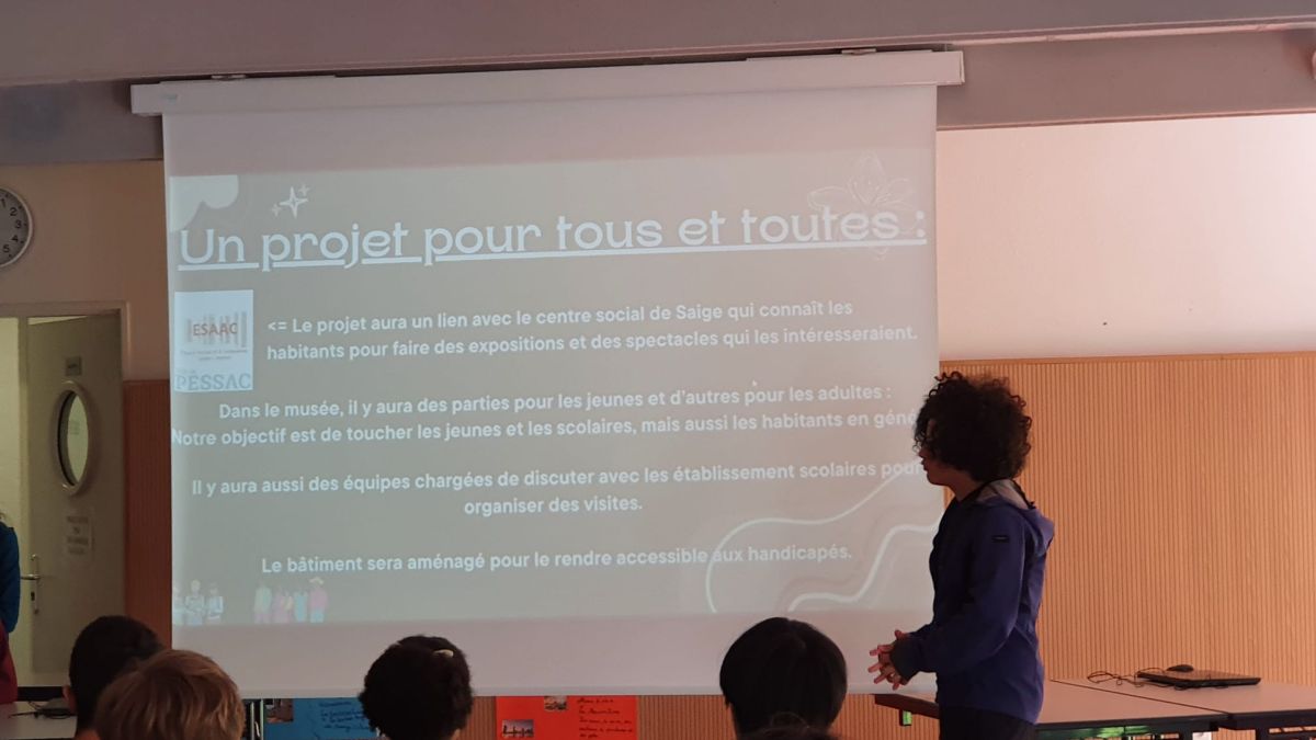 Mardi dernier, les élèves de 3°D, endossant le costume d'aménageurs et d'aménageuses, d'architectes, d'élues et d'élus ont présenté un projet d'aménagement aux habitantes et aux habitants de Pessac, incarnés par les élèves de 3°B.