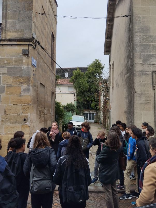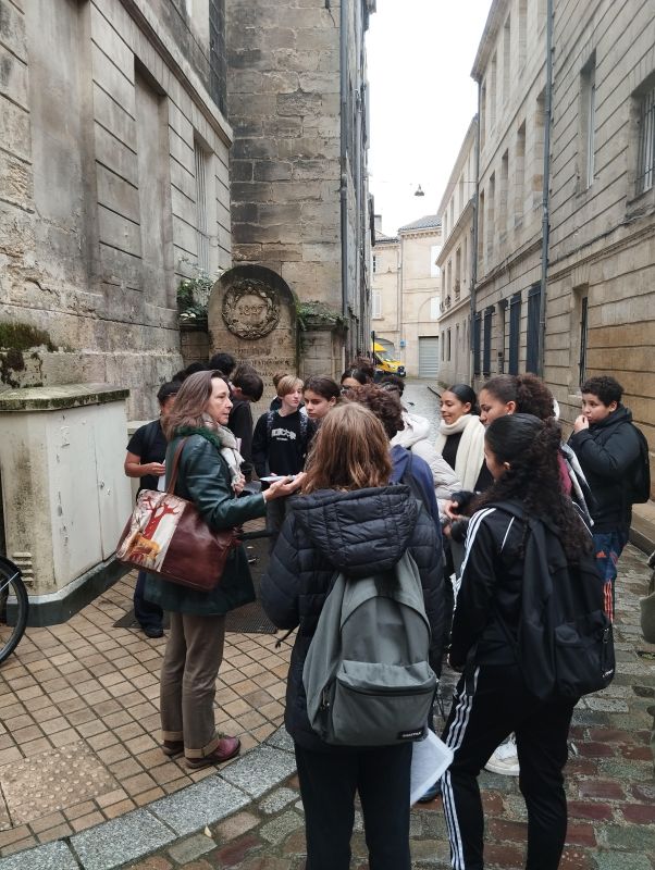 Ce fût l'occasion pour eux de revenir sur les pas des personnages principaux de l'histoire dans le quartier Saint- Seurin et de mieux appréhender la vie quotidienne des commerçants et artisans, le développement de la ville et le sort des figures libres de couleurs à l'époque du commerce triangulaire.